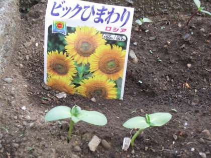 2年生の花壇でヒマワリの芽が出始めました。(写真上)