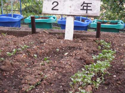 その他実用的に貝割れ大根も植えたようです。(写真下)