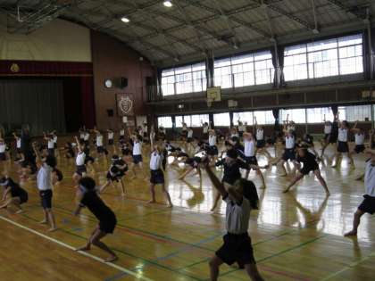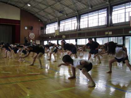 雨の運動会練習(南中ソーラン節 3・4年生)