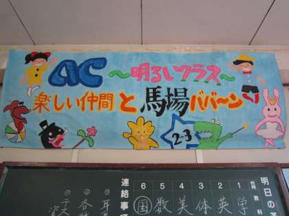 教室の後ろに掲示してある、クラスのシンボル(? 旗?)が、とてもそのクラスを象徴しているなあと思い、写真を撮りました。