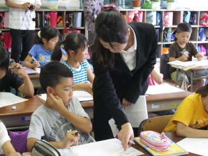 緊張しながらも、上手に児童の言葉を引き出し、きちんと授業が行えました。