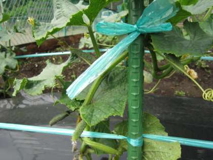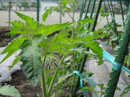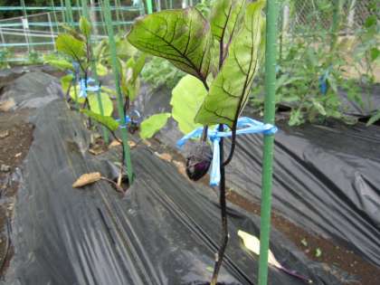 ナスやキュウリは、早くもかわいらしい実が出来て、熟すのを待っている状態です。(4年生)