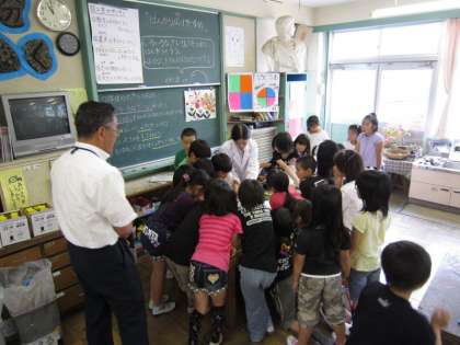 この日は、初任者研修(新しく先生になった人のフォローの研修会)として、研究授業を行い、八王子市教育委員会の須長研究主事が指導に来てくださいました。