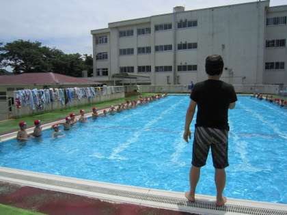 学年主任の山田主任教諭が行う全体指導を、若手の山口教諭が支え、その二人を、蓑輪PTA会長が優しく見守る。男ばかりではありますが、絶妙の3人組でした。