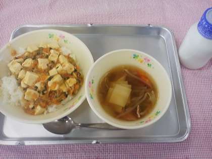 6月20日のこんだては、マーボー丼・ワンタンスープ・牛乳でした。