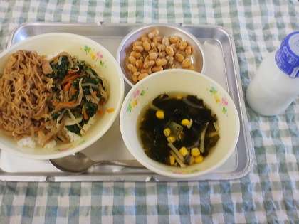 6月22日のこんだては、ビビンバ・わかめたっぷりスープ・じゃこビーンズ・牛乳でした。