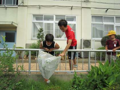7月6日(水)朝からブルーベリーの木にビニールをかぶせ、6年生が理科の実験を行いました。
