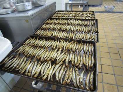 ししゃもは人数分全部焼くのに、どれだけ時間がかかったのでしょうか。(写真中・下)
