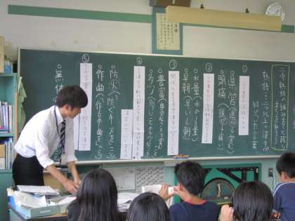 5年1組に教育実習にも来ていた関原先生が国語の授業を行いました。