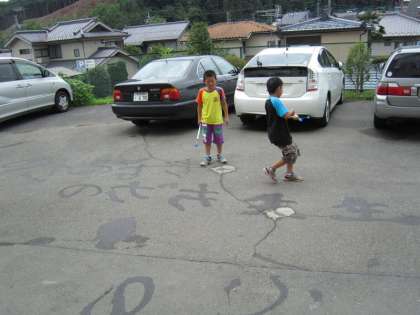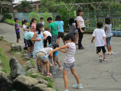 字を書いたり、目標物に水を当ててみたり、思い思いに活動しました。