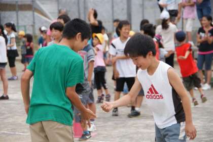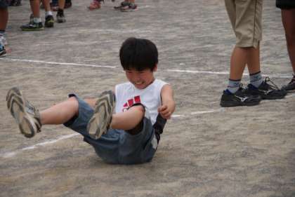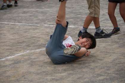 じゃんけんに負けた後、悔しさのあまり、ふざけて地面を転げ回る6年生のK君!