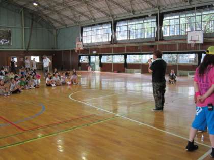 朝から暑い日でしたが、学校管理員(通称”警備さん”)の久保さんが、朝早く体育館の窓を開けておいてくださいました。