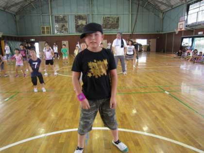 写真下:ダンスチーム6年 恩一小の放送委員でもあるO部君が、アシスタントとして大活躍!