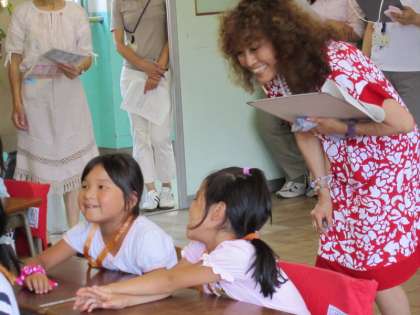三浦教諭のテンポ良い指導に、最後まで集中力を切らさず活動できました。(写真上)