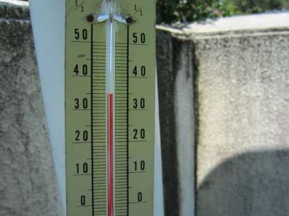 写真上:温度計は35度!