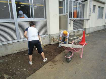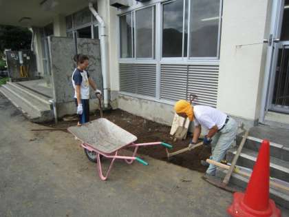 給食室前に土の部分があり、抜いても抜いても雑草がはえてしまい、給食室の換気が十分に行われません。