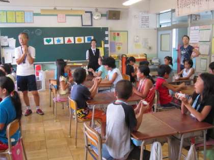 人数が一人半端だったので、柳村校長が児童と対戦しました。