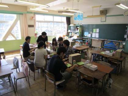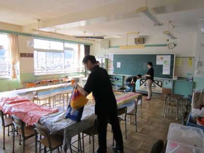 体育館でみんなが待っている間に、会場となる各教室では、着々と準備が行われていました。