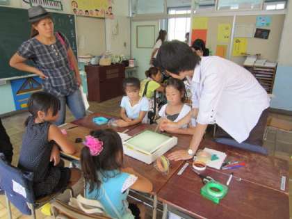 「色の不思議」では、角度によって光の見え方が違ったり、セロファンの粘着テープを貼ることでまた見え方が変わったりする不思議を体験しました。