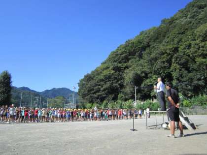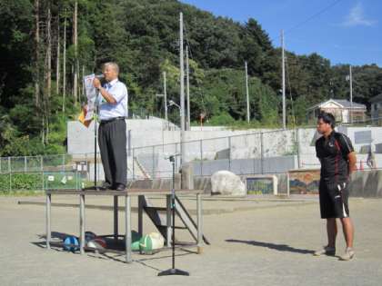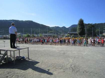 9月13日(火)校庭で全校朝会が行われました。