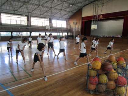 9月14日(火)朝、体育館でバスケットボールクラブの朝練習が行われました。