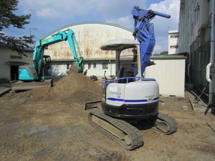 写真中:重機が入り、表面の土を取り去りました。9月14日撮影