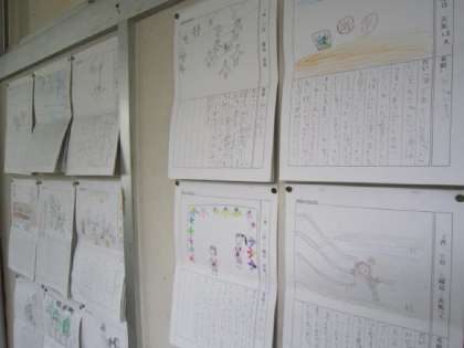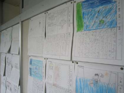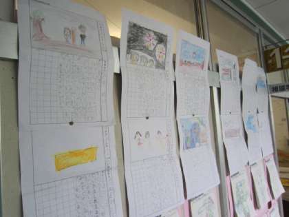 1・2年生の廊下には、夏休みの絵日記が掲示してありました。
