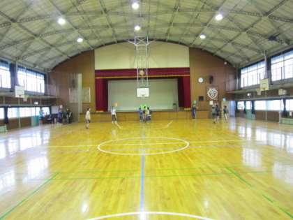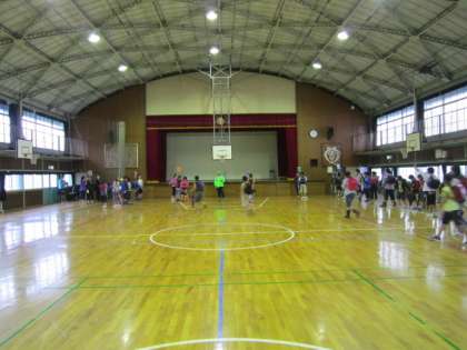 高学年がまず体育館に集まり始めました。