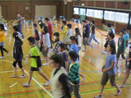 中には、音楽に合せて踊るように歩く児童もいました。