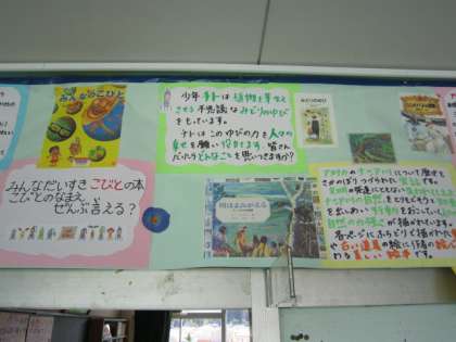 絵本室前(2F)の廊下と、図書室前(3F)の廊下に掲示してあります。