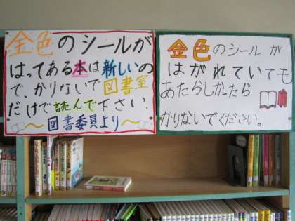 今年度購入した本には金色の丸いシールが貼ってありまる。
