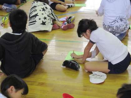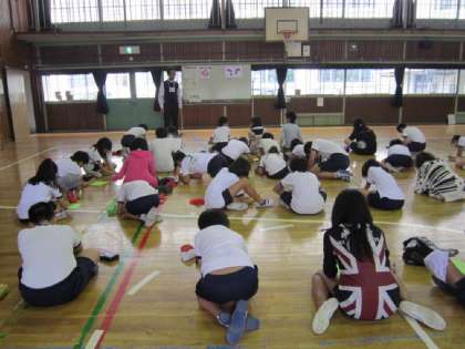10月13日(木)5時間目に体育館で外国語活動の授業を行いました。