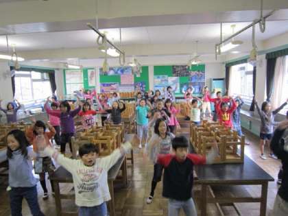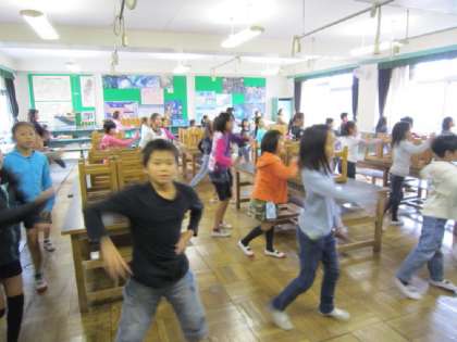 10月19日(水)お昼休みに理科室でTOKYO体操の練習をしました。