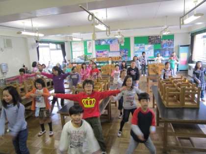 クラスや学年で練習してきていたので、今年度初めて平田副校長が一緒に挑戦しましたが、ほぼ完成に近いできで、TOKYO体操をすることができました。