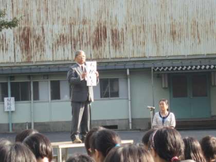 10月25日(火)校庭で全校朝会が行われました。
