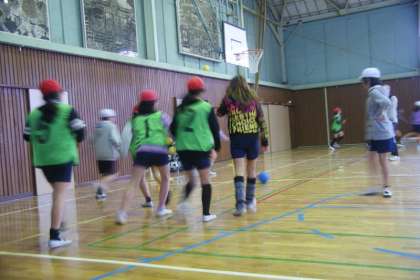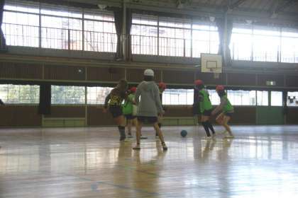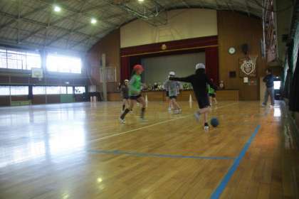 ボールを二つ使って、体育館中をみんなが走り回ります。