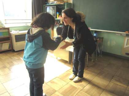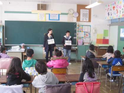 写真下:目を見て自己紹介し、握手もしっかりできました。