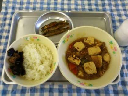 10日のこんだては、ごはん・ワカサギの南蛮漬け・肉豆腐・昆布の佃煮・牛乳でした。