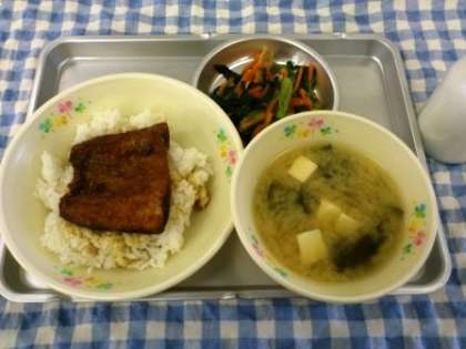 今日のこんだては、さんまのかば焼き丼・小松菜の煮びたし・みそ汁・牛乳です。