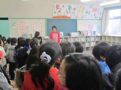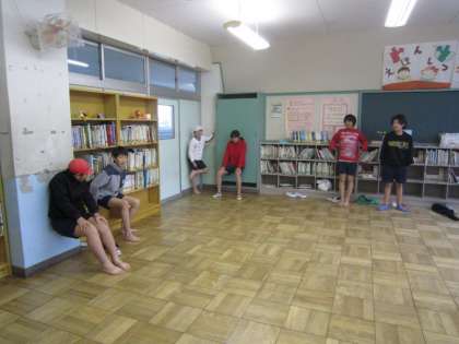 ソフトボールクラブは、校庭が使えないため、絵本室で筋トレを行っていました。