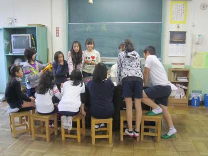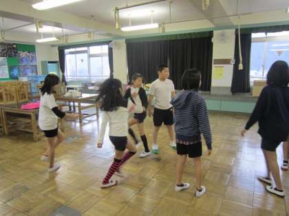 3月11日日曜日に、小田野中央公園で行われる「さくらまつり」で披露するダンスを、3年生に見てもらいました。