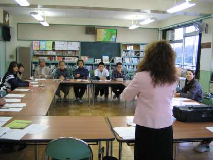 1月25日の研究発表会時の授業を受けてや、平成24年度の恩一小の英語・外国語活動のあり方についてご指導いただきました。