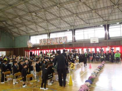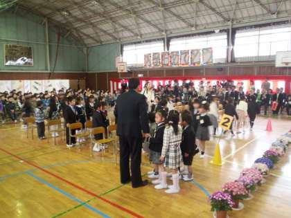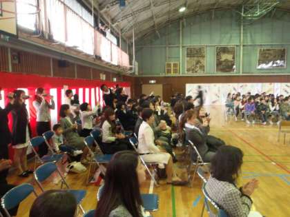一斉にカメラやビデオが、かわいらしい1年生に向いて動きました。