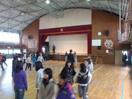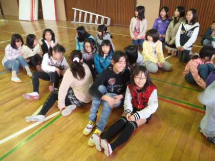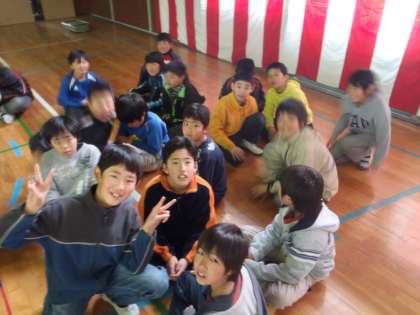 体育館に戻ってみると、もうすっかり片付けも終わり、6年生が教室に戻るところでした。(写真下)