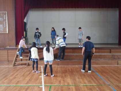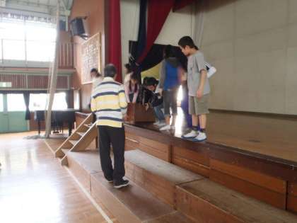 1年生が座るひな壇のセットや、プログラムの設置、リハーサル等を行いました。