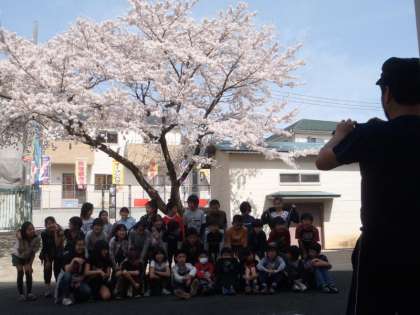 この日は、桜の花の下、6年1組山田学級が集合写真を撮っていました。