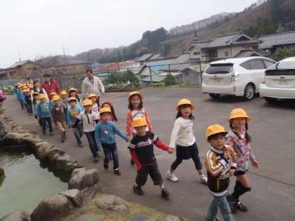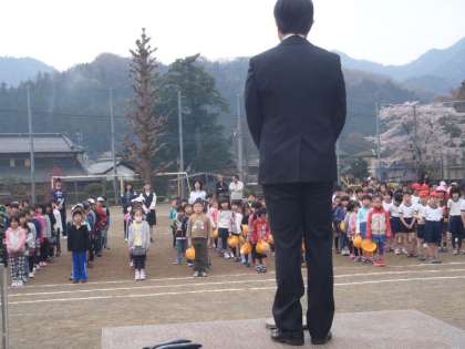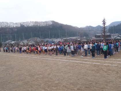 1年生は、朝、並んで校庭に出て整列しました。(写真上)