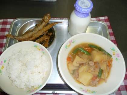 ししゃもはニンニクとしょうゆで下味をつけたものをから揚げにしました。