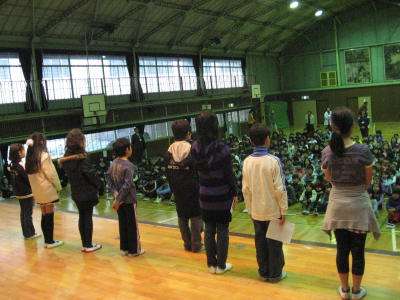 今年大活躍してくれた、今年度の児童会役員の退任の挨拶もありました。