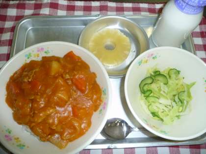 おなじみの「じゃがいもカレー」です。グリンピースのかわりに ひよこ豆が